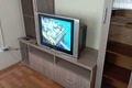 Телевизор старый, кинескопный panasonic, мутная картинка, плохо видно, работает от приставки у которой разломан пульт (склеен скотчем)(см. Фото). "офисный" потолок, не уютный (см. Фото). Линолеум рваный (смюфото). На холодильнике весь пластик пожелтел от времени (см. Фото). В спальне, даже если выключаешь свет, диодная лампа все равно еле горит, спишь с подсветкой, не комфортно (см. Фото). Включили на ночь кондиционер, в три часа ночи в вентилятор начало что то попадать, звук был громкий, что то небольшое и достаточно твердое попадало и отлетало, в пять утра это что-то забило слив кондиционера и он потек (см. Фото). На десерт, убил таракана, ещё один крупный и быстрый убежал (см. Фото)