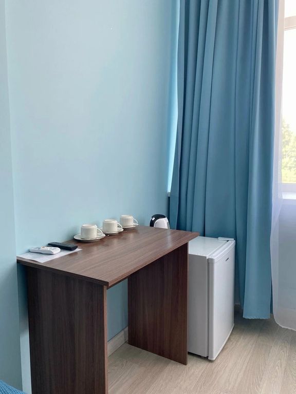Гостиница по функционалу номера ближе к хостелу. Мебель из самых дешёвых. Настольная лампа на тумбочке у кровати почему-то одна. Из сервировки в номере две чайные чашки, два блюдца и две маленькие ложки и электрочайник самый дешманский. Элементарный стакан для воды пришлось просить на ресепшн. Вообщем для одного командировочного номер, чтобы переночевать сойдёт. Да и то, если объект командирования в этом районе. До центра 10 минут на такси. До автобусной остановки нужно идти метров 300.
