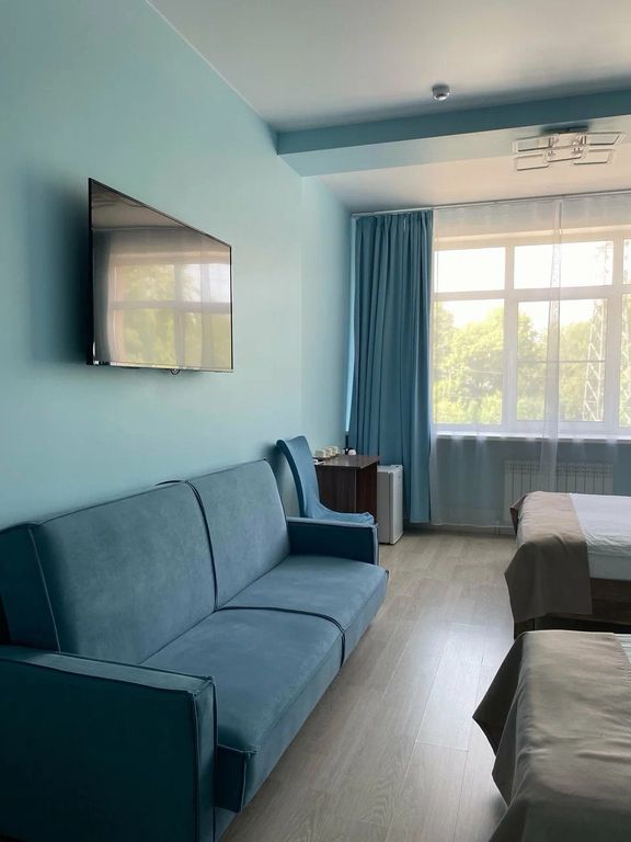 Номер достаточный для того, чтобы переночевать одну ночь. Минусы: отсутствует окно на улицу, очень жарко (зимой), запах канализации в санузле, который никаким образом не выветривается.
